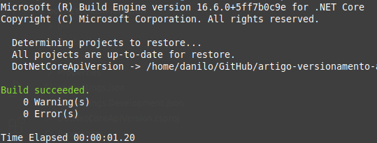 Agora que vimos o .Net Core 3.1 instalado, vamos executar o comando para criar um novo projeto com o nome ApiVersion.