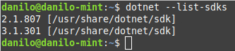 Primeiro vamos verificar se o .Net Core 3.1 está instalado. Para isto vamos abrir o terminal e digitar o comando abaixo para listar os SDKs instalados: