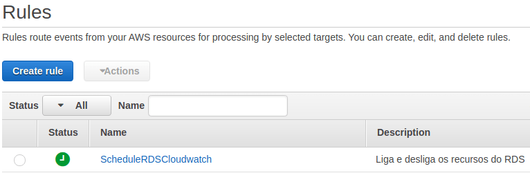 A função está configurada para manter as instâncias de RDS ligadas durante o horaŕio de expediente, ou seja, das 8h às 19h. Fora do expediente e aos finais de semana ele fica desligado.